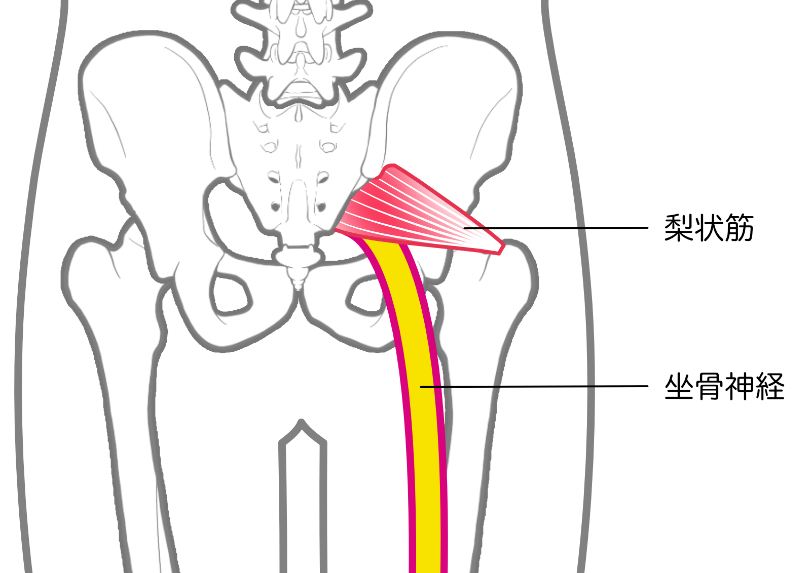 お尻の深い位置にある「梨状筋(りじょうきん)」という筋肉が緊張し、