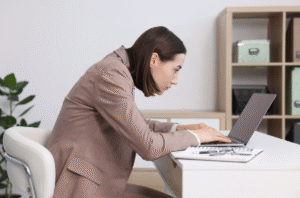 姿勢を支えるために、首や腰、背中の筋肉が常に緊張し、慢性的なこりや痛みを引き起こしてしまいます。