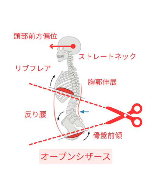 ・胸が張りすぎて肋骨が開く