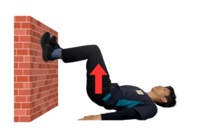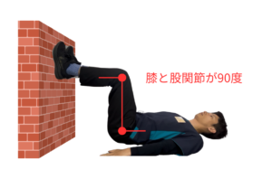 仰向けで壁に足をつける