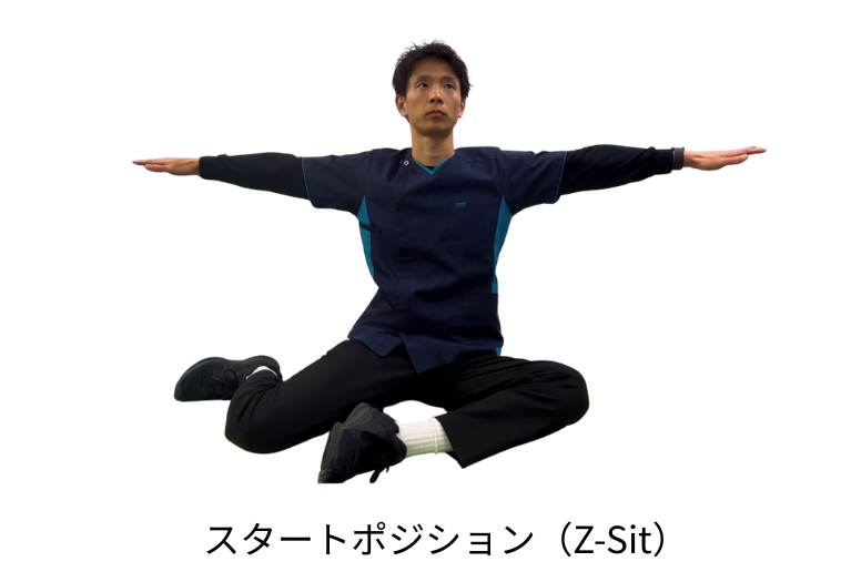 床に座り、両膝を曲げて横座り(Z-Sit)になります