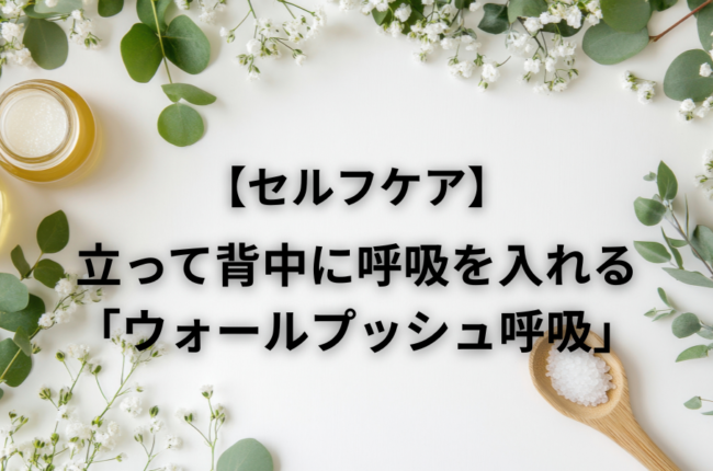 立って背中に呼吸を入れる「ウォールプッシュ呼吸」